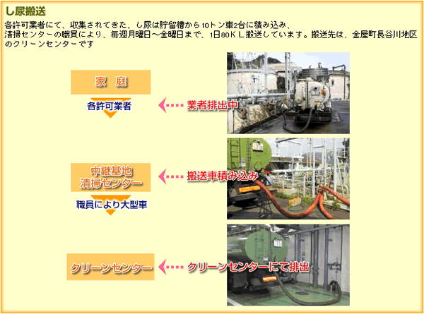 - 許可業者は収集したし尿等を中継基地(清掃センター)に搬入します。